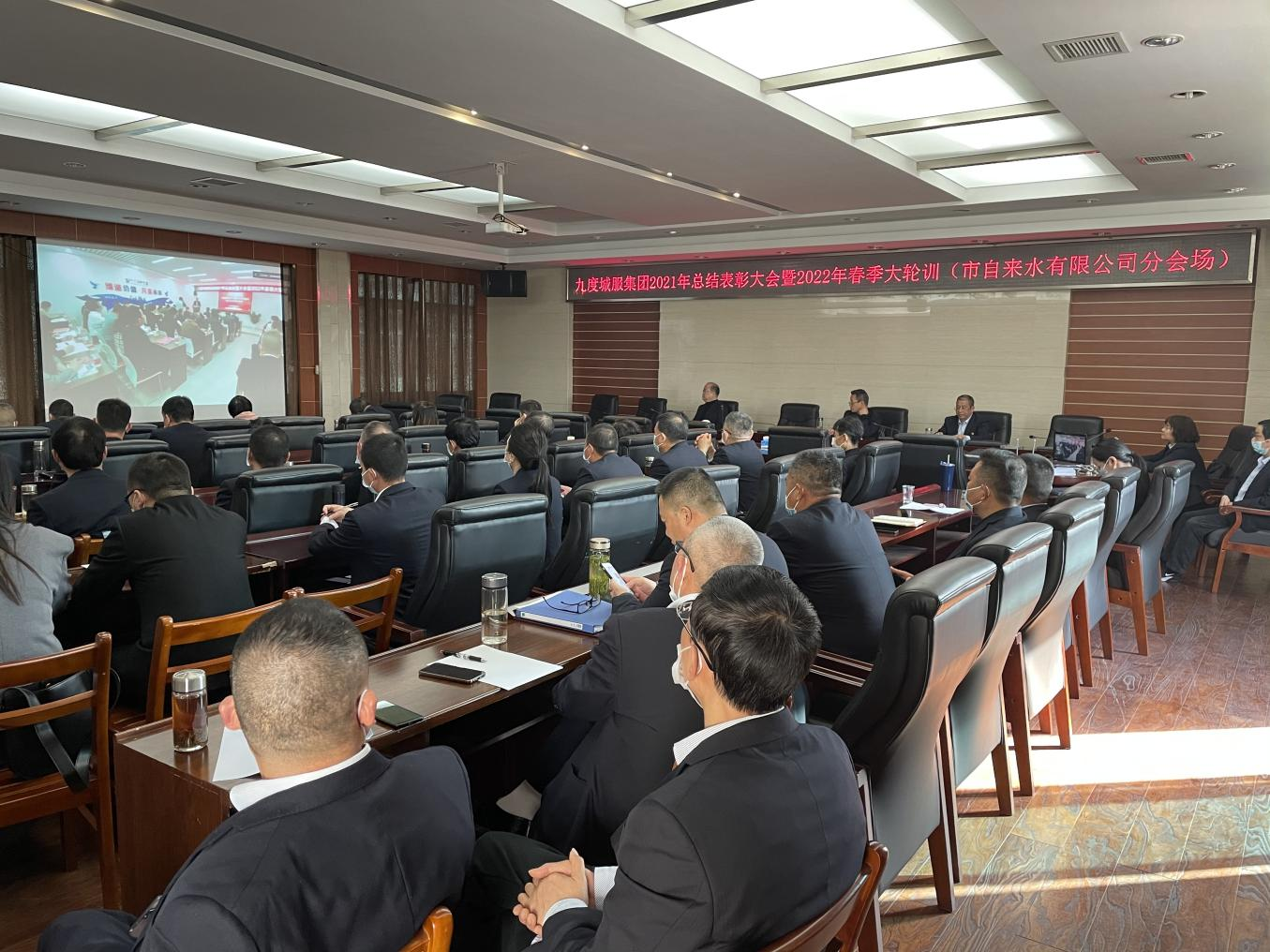 3月11日-12日,在市自來水公司三水廠會議室,中層副職及以上人員以視頻會議的方式參加了九度城服集團(tuán)2021年度總結(jié)表彰暨2022年春季大輪訓(xùn)。