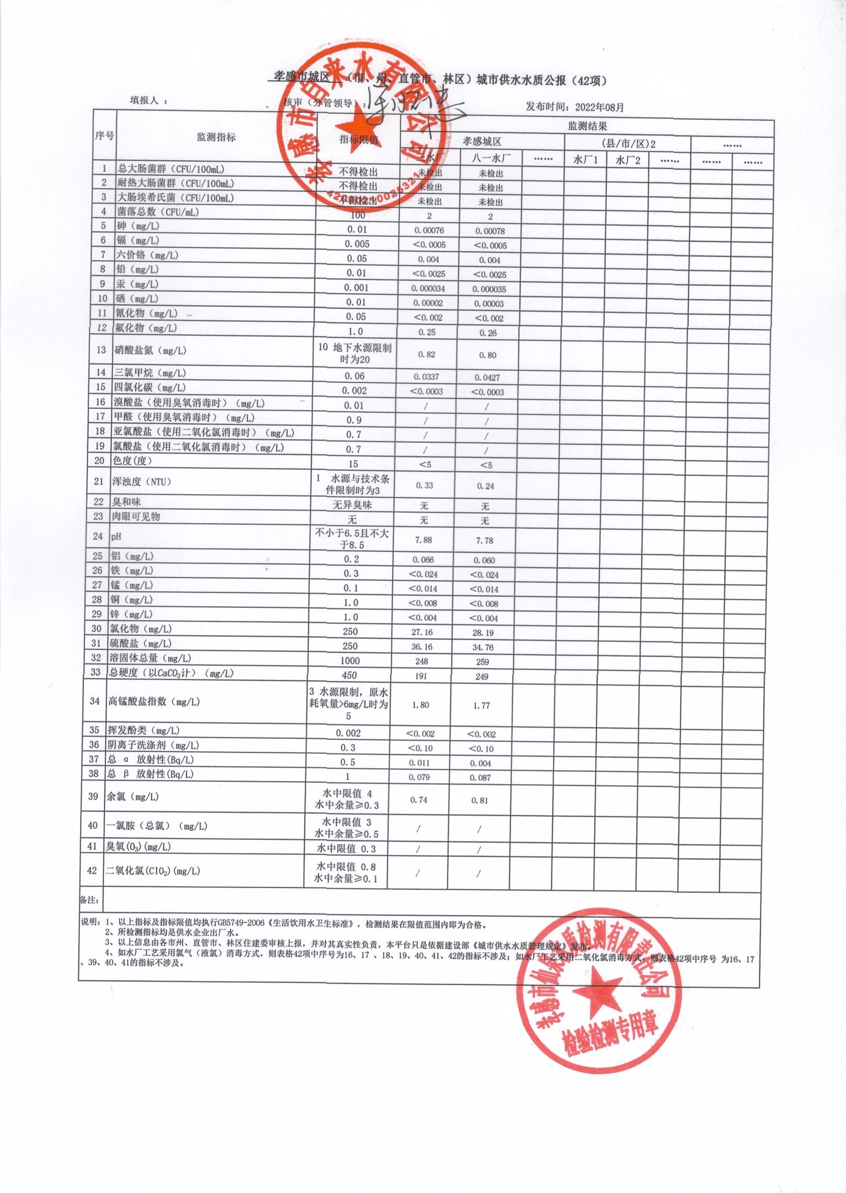 2022年8月水質(zhì)報(bào)告