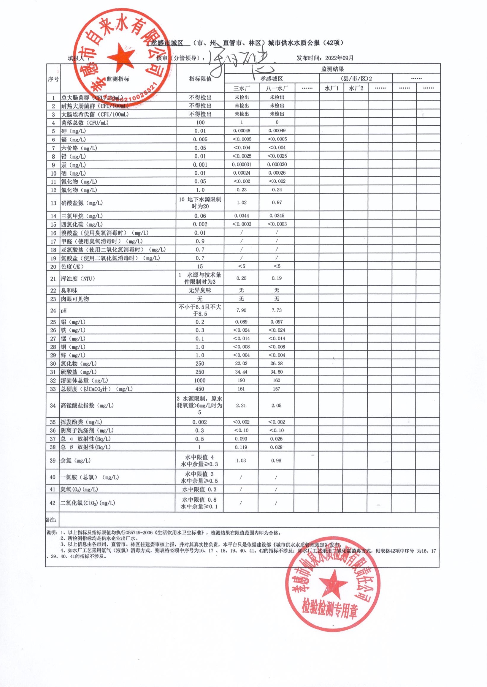 2022年9月水質(zhì)報告