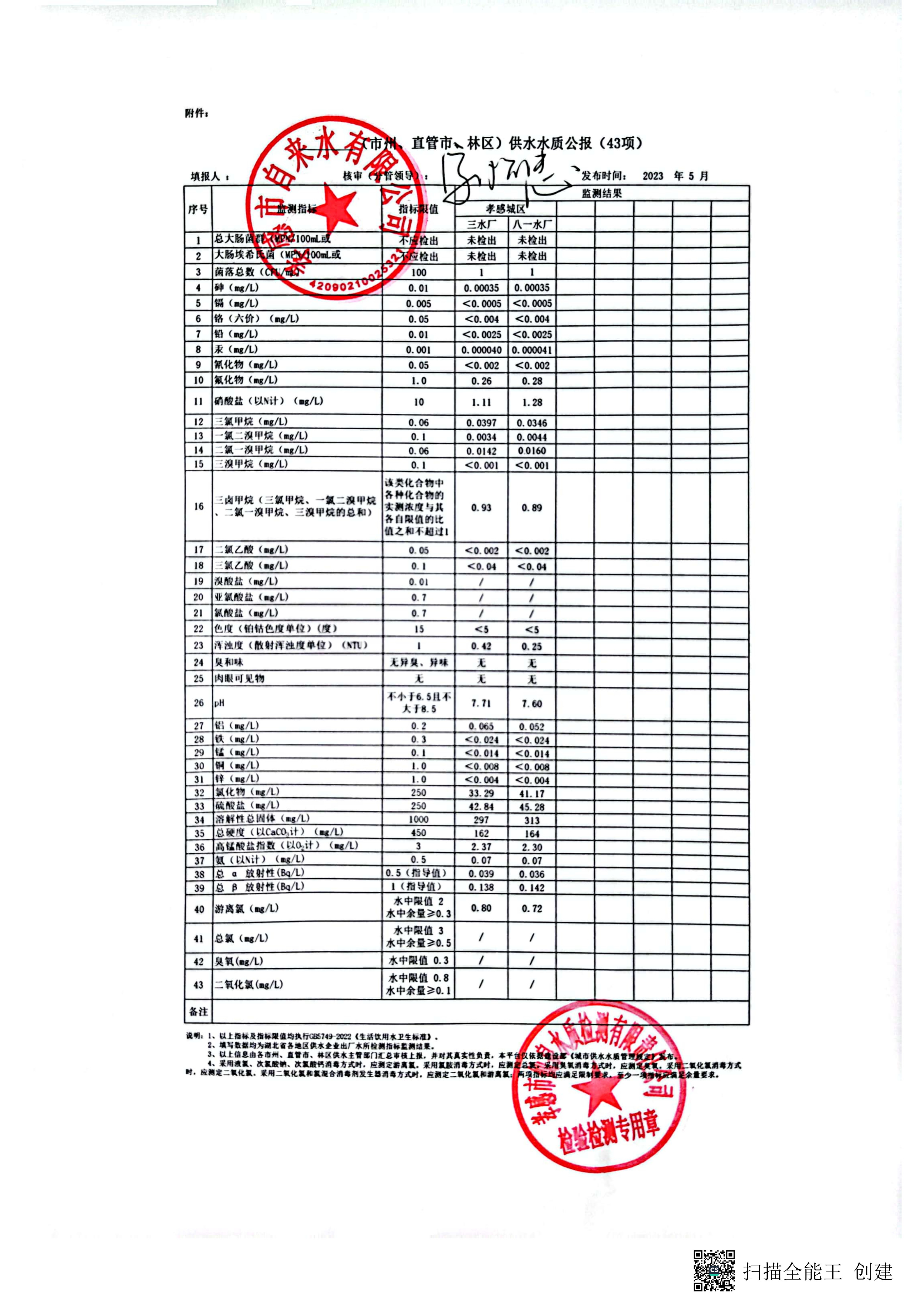 2023年5月水質(zhì)報(bào)告