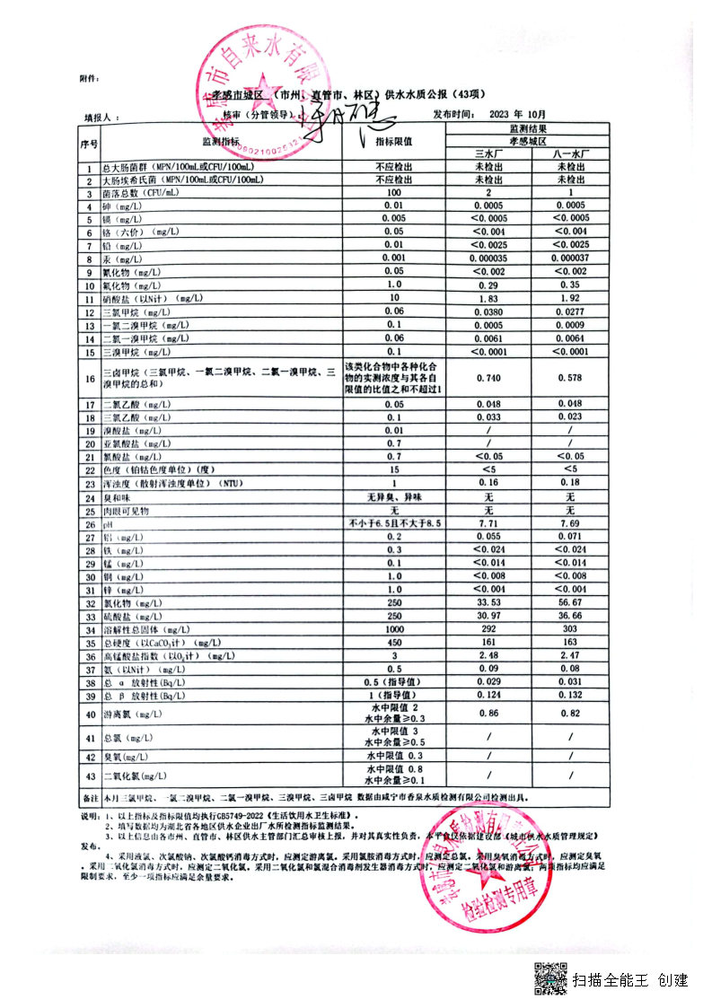 2023年10月水質(zhì)報(bào)告