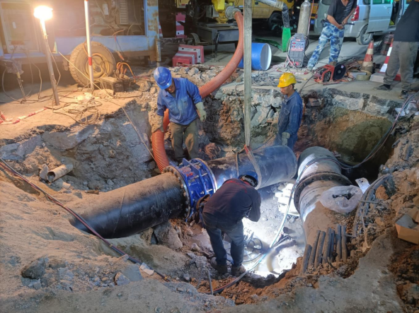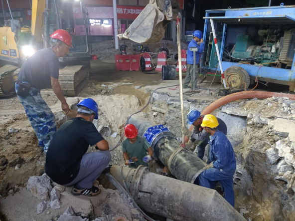 經(jīng)測算,此次城站路-長征路段改造老舊管網(wǎng)共計773米,采用球墨鑄鐵管DN500口徑管材。由于該路段岔路口較多,南北側(cè)共計需安裝16處支管,施工難度大。為確保工程進度,8月19日,我公司工作人員提前進場,倒排工期,抽調(diào)人員24小時駐守現(xiàn)場,統(tǒng)籌協(xié)調(diào),全力配足人力及機械。同時,科學安排晝夜輪班施工,在保證質(zhì)量的前提下快速推進整體項目進度。