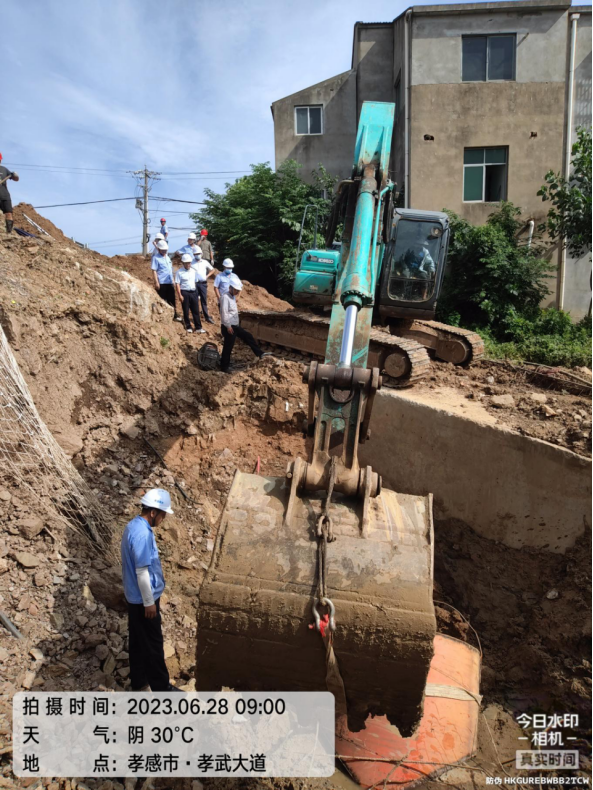 為確保供水主管碰接施工安全穩(wěn)妥推進(jìn),壓縮停水作業(yè)時間,將停水對城區(qū)高峰供水的影響降至最低,我公司多次組織技術(shù)信息部、工程管理部、運行維護(hù)部、應(yīng)急安全部等部門到現(xiàn)場勘察會商方案。根據(jù)最終確定的分解施工方案,6月28日早上8點,孝武大道城南大道供水管道碰接工程正式開始施工。