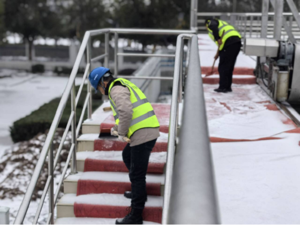 以雪為令,雪停路清。22日早上7點,公司派出5名志愿服務隊員參與公交站臺掃雪除冰行動,有力保障群眾公交出行安全。除此之外,為了保證生產(chǎn)廠區(qū)道路暢通,公司采取有力舉措,仙女湖水廠、二水廠、一水廠、龍宮等多個辦公區(qū)域共調(diào)動工作人員100余名和2臺鏟車,采取撒鹽破冰、鏟雪等方式,確保生產(chǎn)及辦公區(qū)域道路暢通。