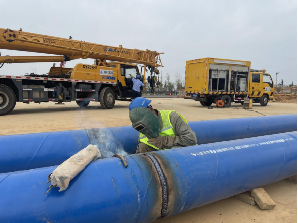 此次管線遷改共需對(duì)2條道路(復(fù)興大道、縱九路)4個(gè)路口共計(jì)1600余米的供水管線進(jìn)行遷改,該工程工期短、地下管線情況復(fù)雜,施工難度教高。為高效配合完成京港澳高速公路改擴(kuò)建工程,全力保障復(fù)興大道、縱九路及周邊企業(yè)、用戶正常用水,公司克服一切困難,對(duì)高速擴(kuò)建施工實(shí)施24小時(shí)全天候配合保障,并提前一個(gè)月組織專業(yè)技術(shù)人員多次進(jìn)行現(xiàn)場(chǎng)踏勘,細(xì)化管線施工連接點(diǎn)位置、停水時(shí)間、焊接點(diǎn)位和方式,制定周密管線遷改接水方案,為新舊管道連接敷設(shè)做好了充足準(zhǔn)備。