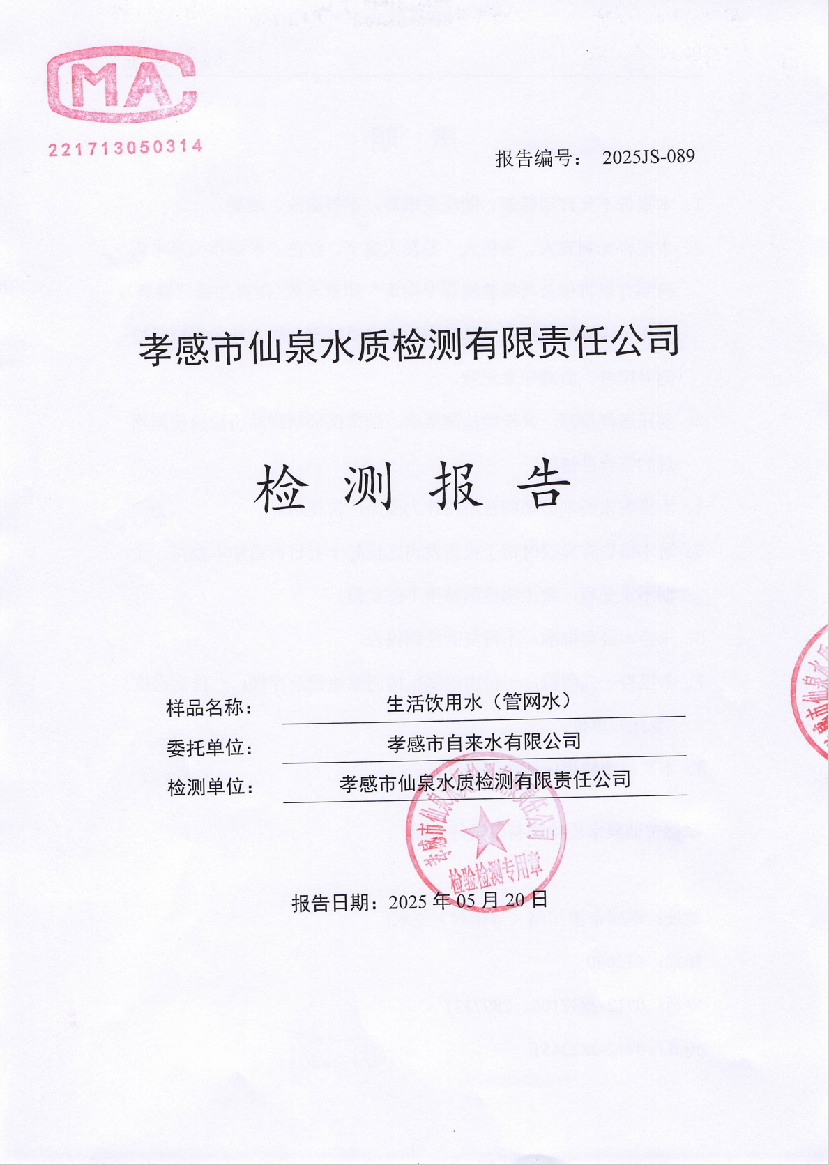 2025年5月檢測(cè)報(bào)告