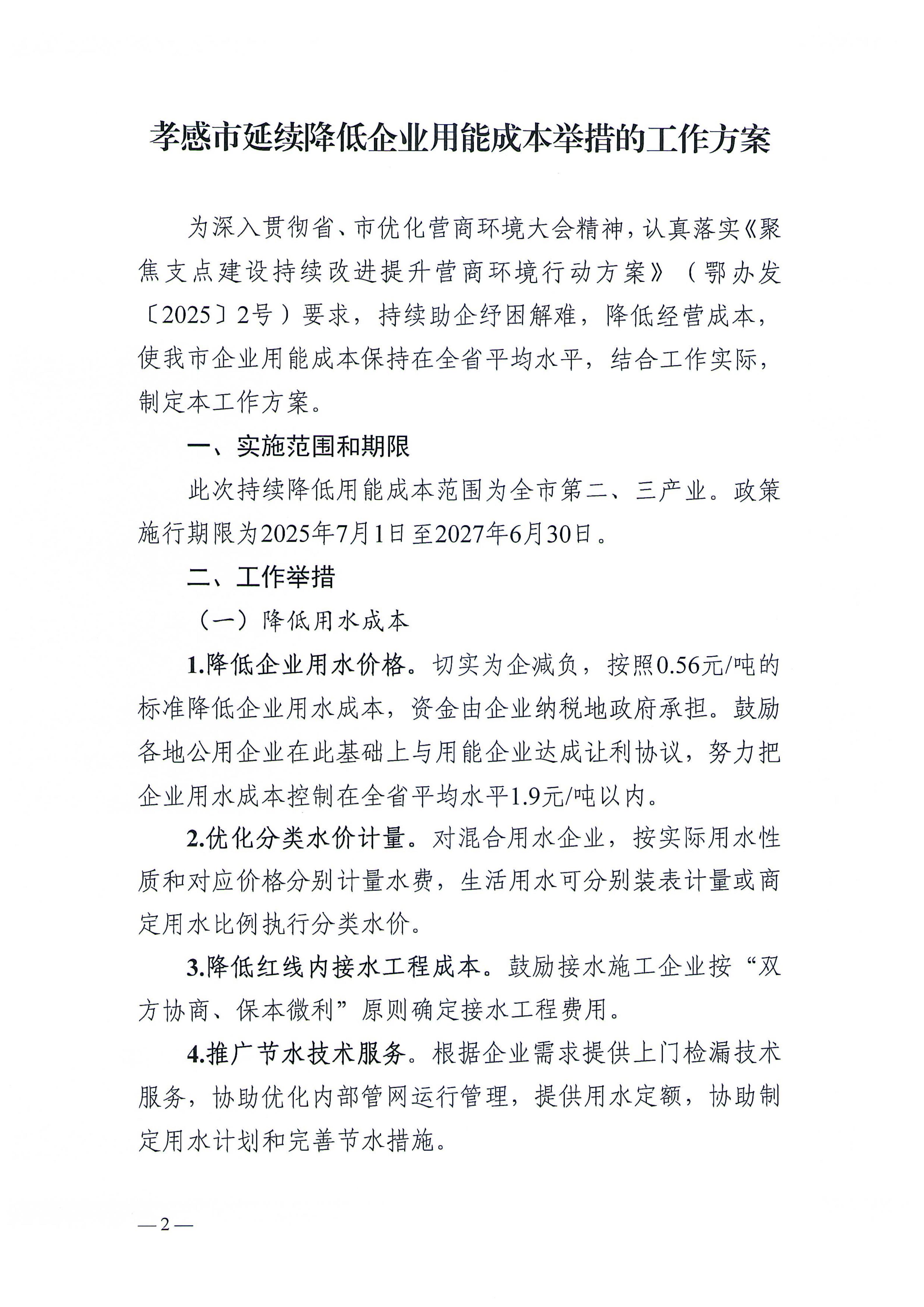 市優(yōu)化營商環(huán)境領(lǐng)導(dǎo)小組辦公室關(guān)于印發(fā)《孝感市延續(xù)降低企業(yè)用能成本舉措的工作方案》的通知