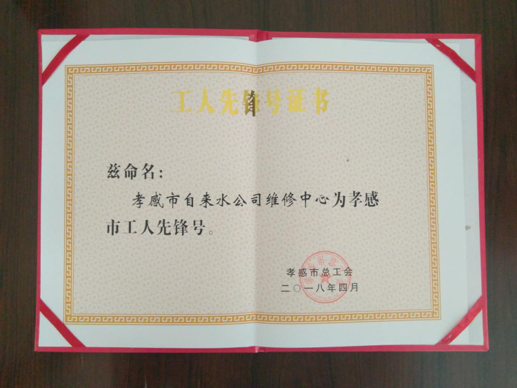 市自來水公司維修中心喜獲“孝感市工人先鋒號”榮譽(yù)稱號