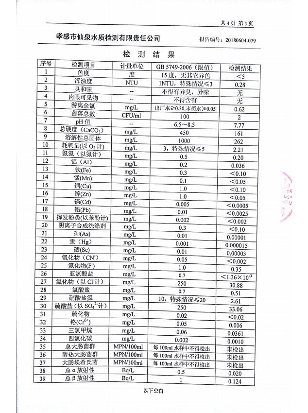 2018年6月水質(zhì)報告