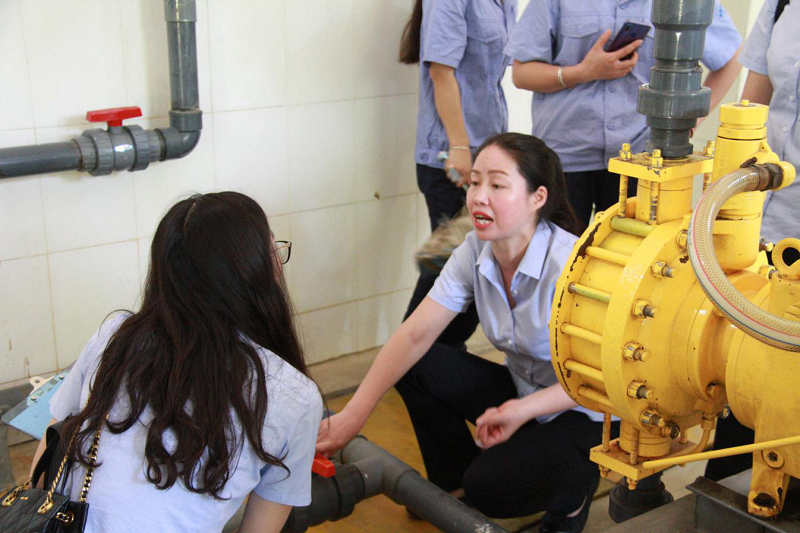 培訓(xùn)過程中,丁廠長首先向大家介紹了三水廠的基本情況和水質(zhì)安全的重要性,隨后帶領(lǐng)大家來到凈化池。通過現(xiàn)場參觀,給水廠職工講解了凈化池的工作原理及基本工藝流程。理論知識授課完畢后,丁廠長還帶領(lǐng)大家來到車間,對各種設(shè)備設(shè)施進(jìn)行了現(xiàn)場講解,并對空壓機設(shè)備導(dǎo)換、加藥泵設(shè)備導(dǎo)換進(jìn)行了實地操練 。
