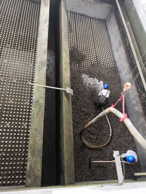 為了確保市民用上更加潔凈、優(yōu)質(zhì)的自來水,近日,公司對三水廠12格V型濾池石英砂濾料進(jìn)行全部更換。