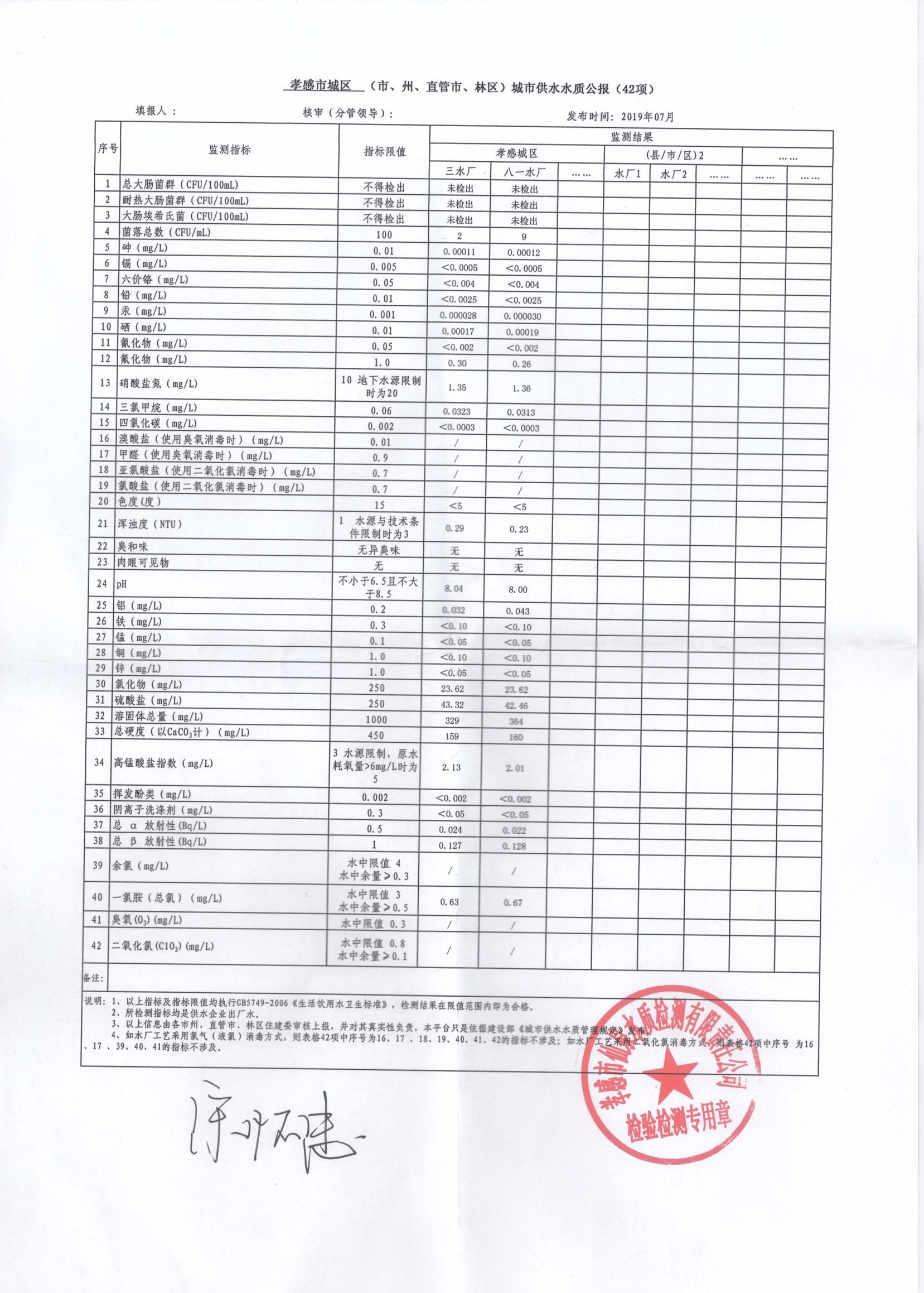 2019年7月水質(zhì)報(bào)告