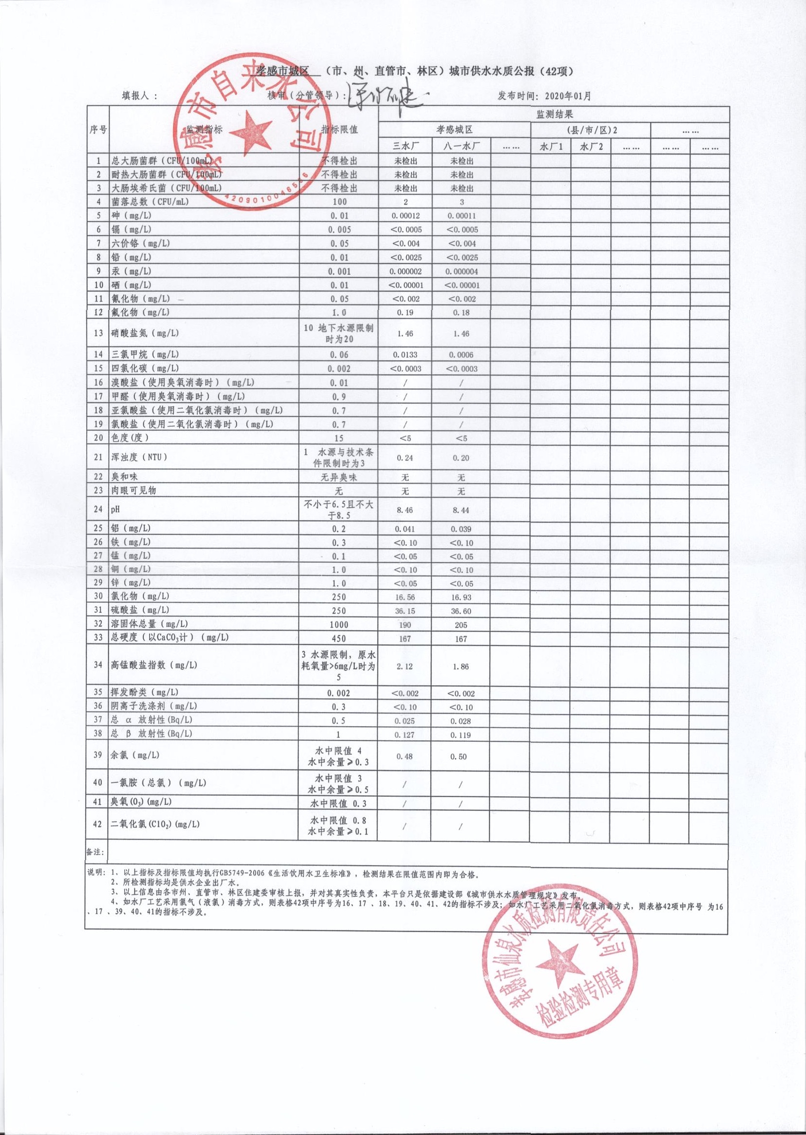 2020年1月水質(zhì)報(bào)告