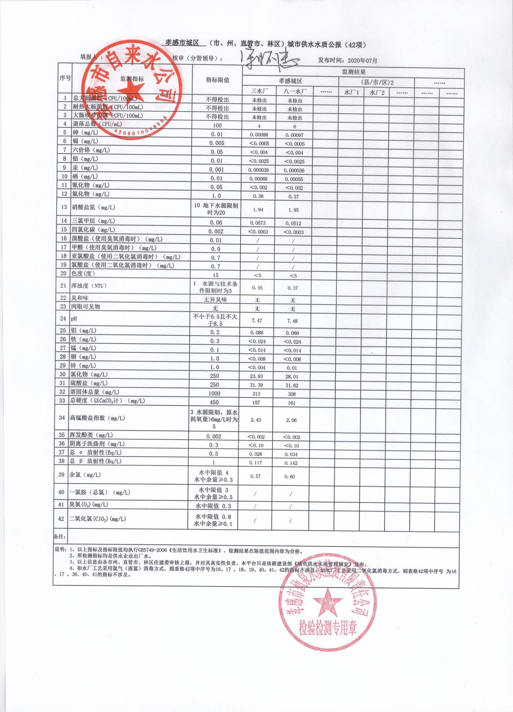 2020年7月水質(zhì)報(bào)告