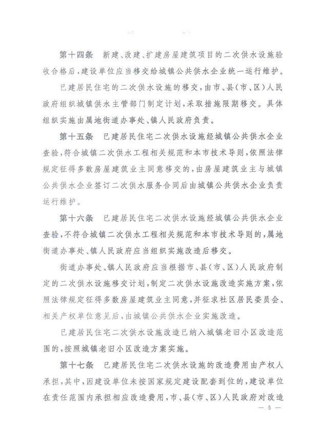 孝感市城鎮(zhèn)居民住宅二次供水管理辦法