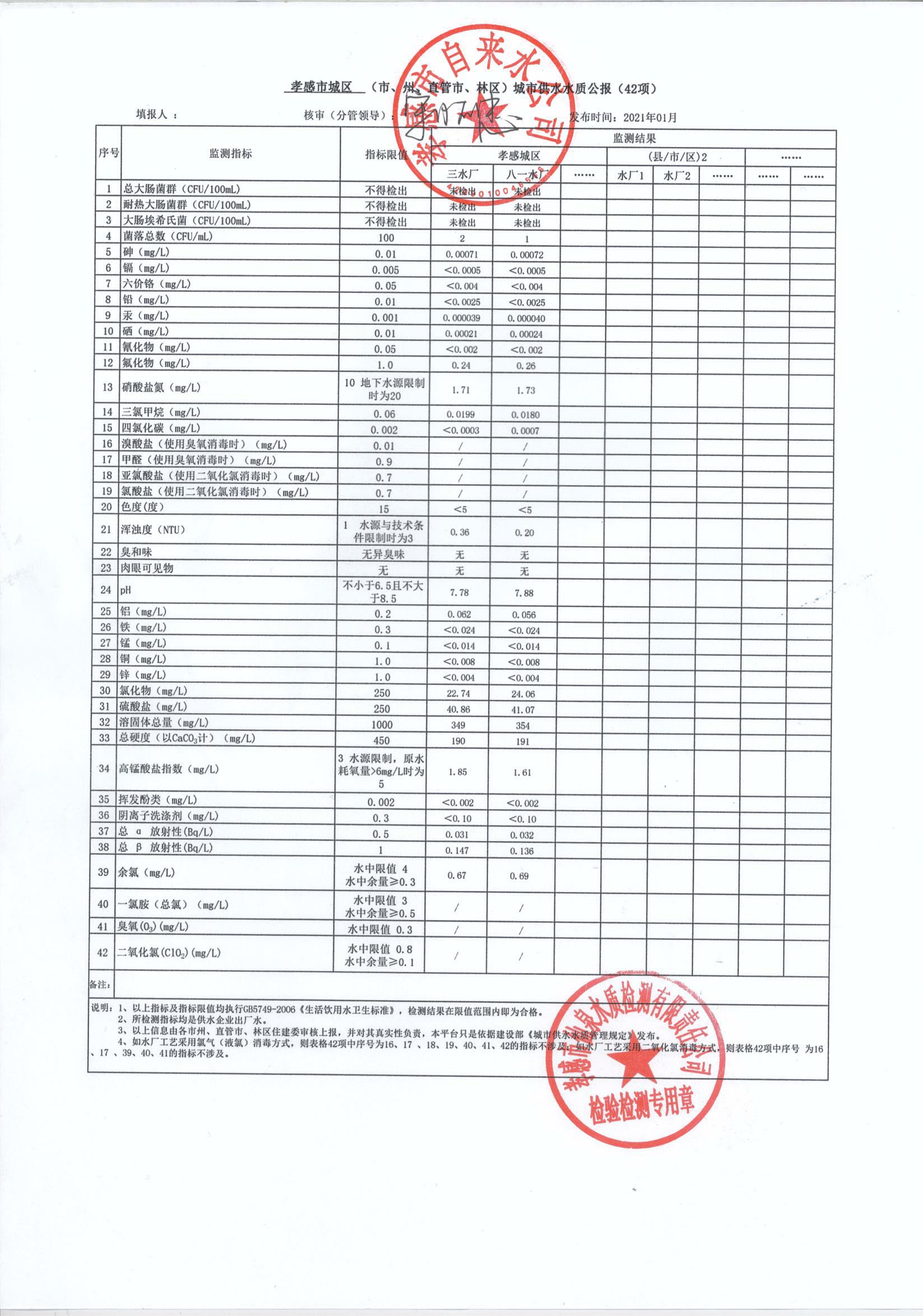 2021年1月水質(zhì)報(bào)告