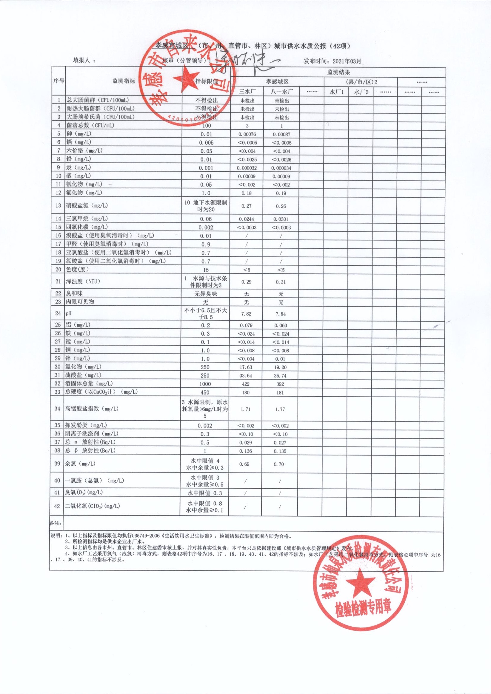 2021年3月水質(zhì)報(bào)告