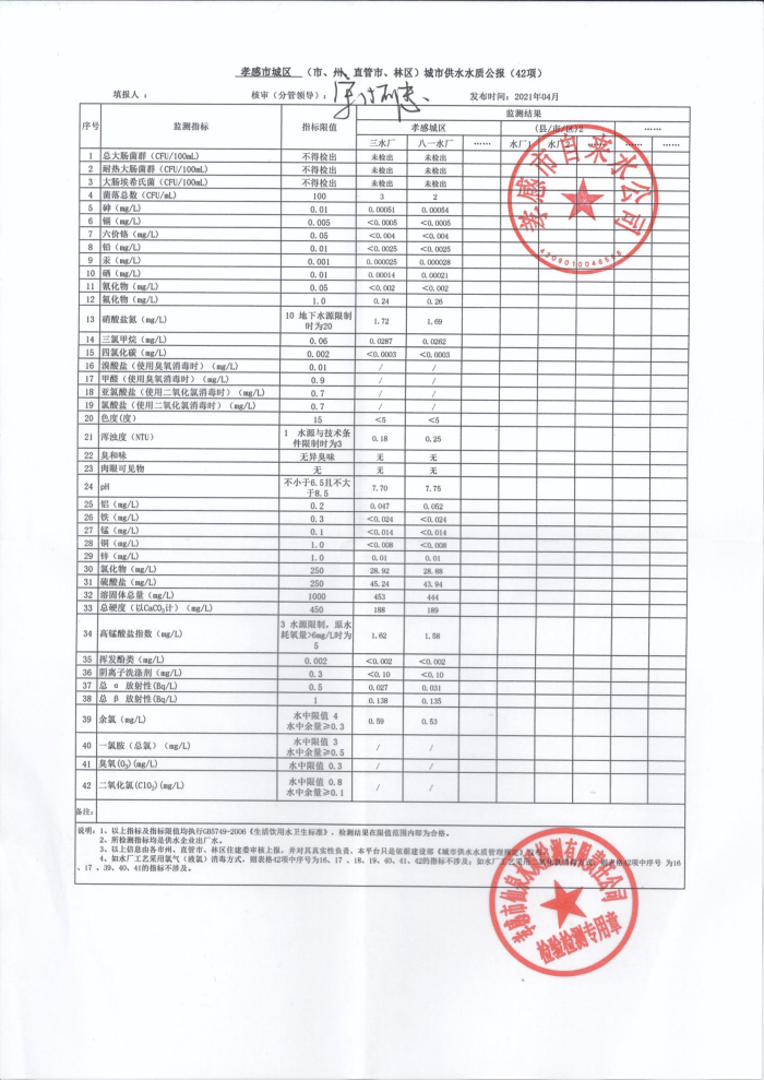 2021年4月水質(zhì)報告
