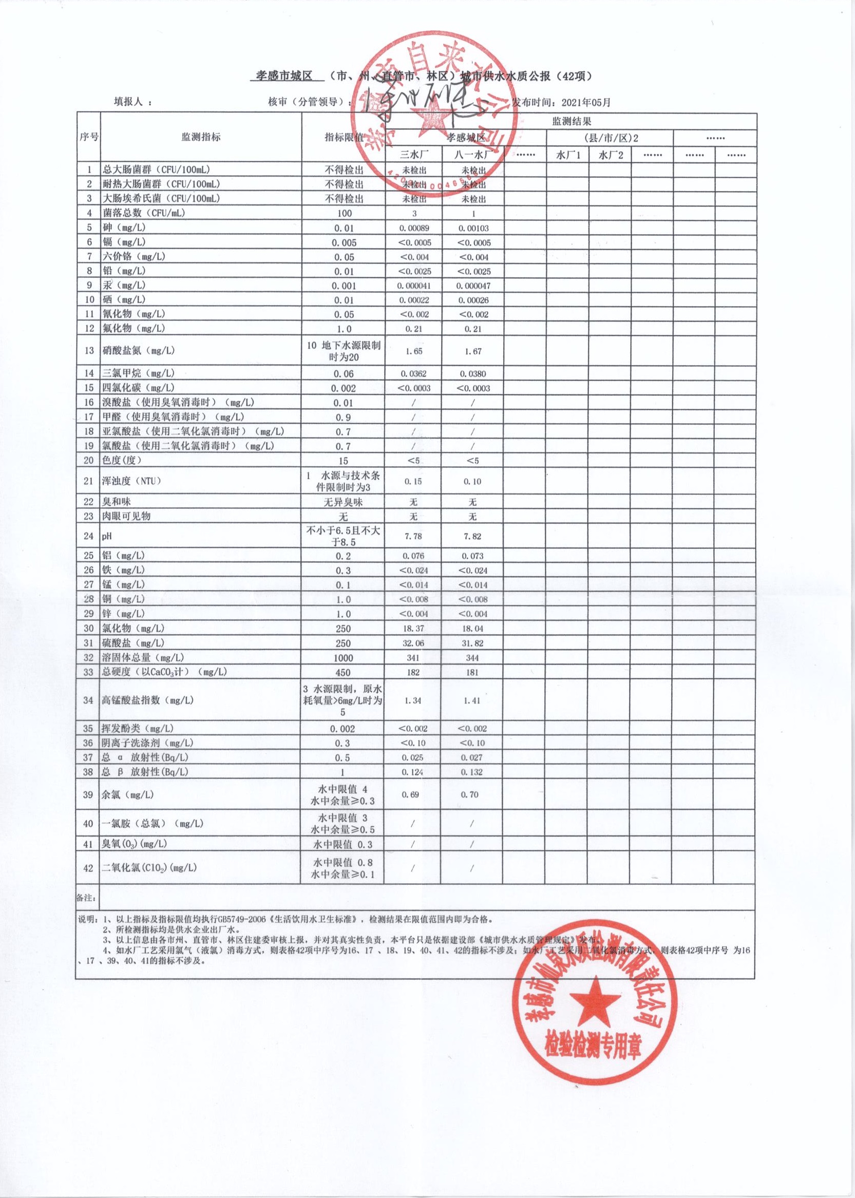 2021年5月水質(zhì)報(bào)告
